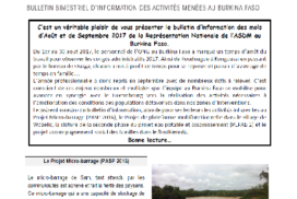 Bulletin bimestriel d‘information des activités menées au Burkina Faso Août et Septembre 2017